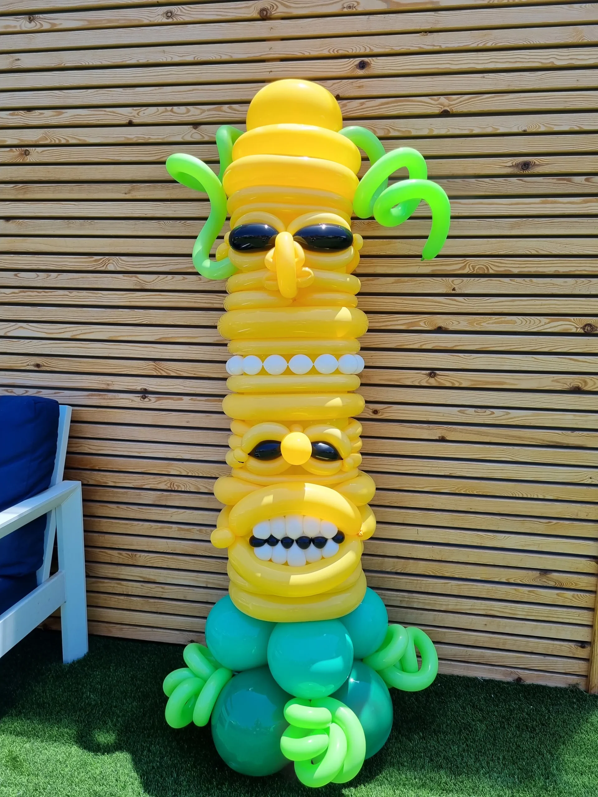 סטנד בלונים בצורת תירס הוא אלמנט עיצובי גבוה ומרשים שמוסיף צבע ואופי לכל אירוע. העיצוב בנוי מבלונים צהובים המדמים גוף תירס עם עלים ירוקים בצדדים ובבסיס ליצירת מראה חי ומלא נוכחות.